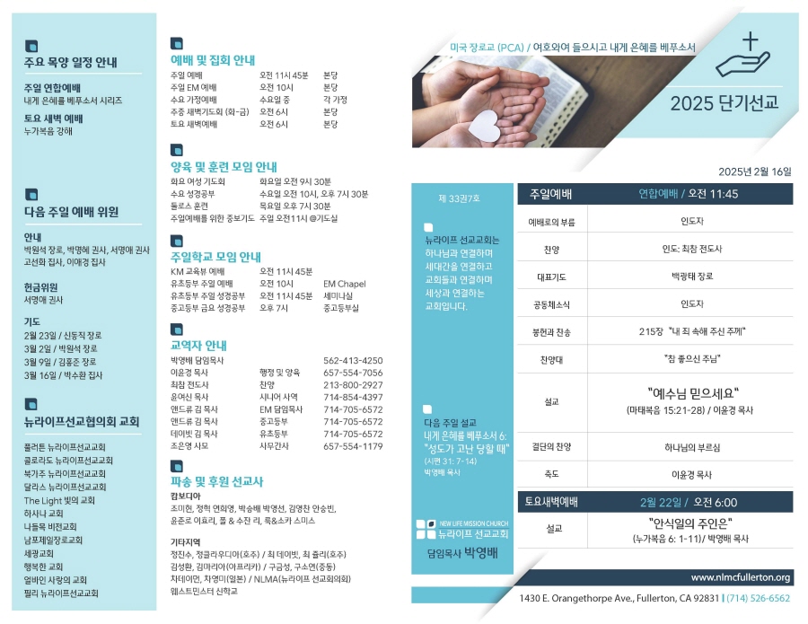 주보 2025년 2월 16일 주보 Publish on February 15,2025 | NLMC 페이지 정보 작성자 NLMC 댓글 0건 조회 1,415회 작성일 25-02-15 10:44 목록 본문 주보 이전글2025년 2월 23일 주보 25.02.22 다음글2025년 2월 9일 주보 25.02.08 댓글 0 댓글목록 등록된 댓글이 없습니다. 목록