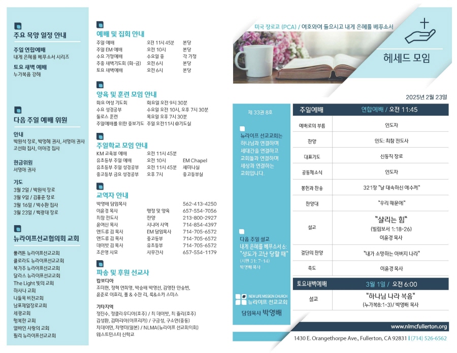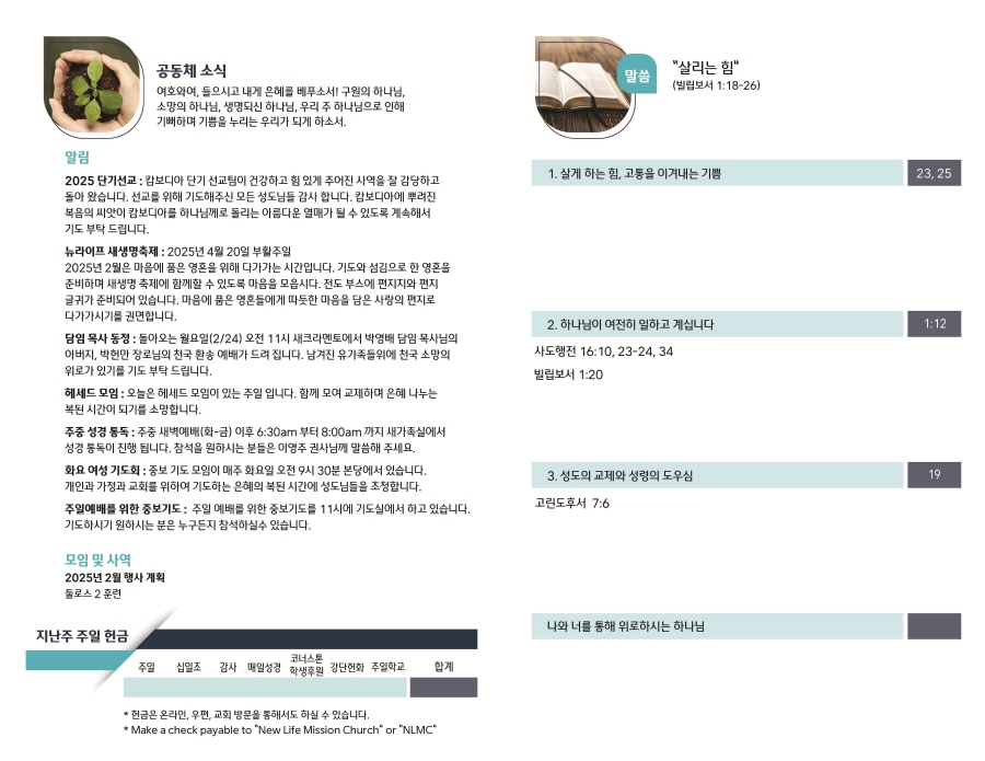 주보 2025년 2월 23일 주보 Publish on February 22,2025 | NLMC 페이지 정보 작성자 NLMC 댓글 0건 조회 1,391회 작성일 25-02-22 14:18 목록 본문 주보 이전글2025년 3월 2일 주보 25.03.01 다음글2025년 2월 16일 주보 25.02.15 댓글 0 댓글목록 등록된 댓글이 없습니다. 목록