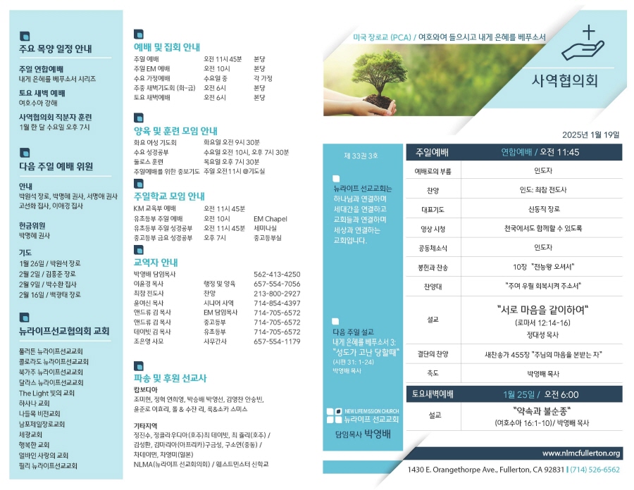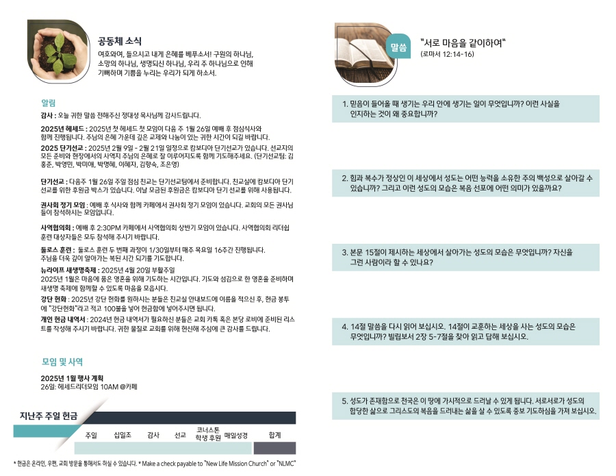 2025년 1월 19일 주보 Publish on January 18,2025 | NLMC 페이지 정보 작성자 NLMC 댓글 0건 조회 1,509회 작성일 25-01-18 12:12 목록 본문 주보 이전글2025년 1월 26일 주보 25.01.25 다음글2025년 1월 12일 주보 25.01.18 댓글 0 댓글목록 등록된 댓글이 없습니다. 목록