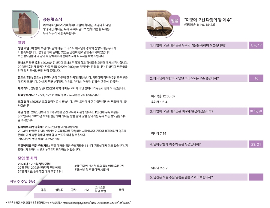 2024년 12월 22일 주보 Publish on December 21,2024 | NLMC 페이지 정보 작성자 NLMC 댓글 0건 조회 1,620회 작성일 24-12-21 10:54 목록 본문 주보 이전글2024년 12월 29일 주보 24.12.28 다음글2024년 12월 15일 주보 24.12.14 댓글 0 댓글목록 등록된 댓글이 없습니다. 목록