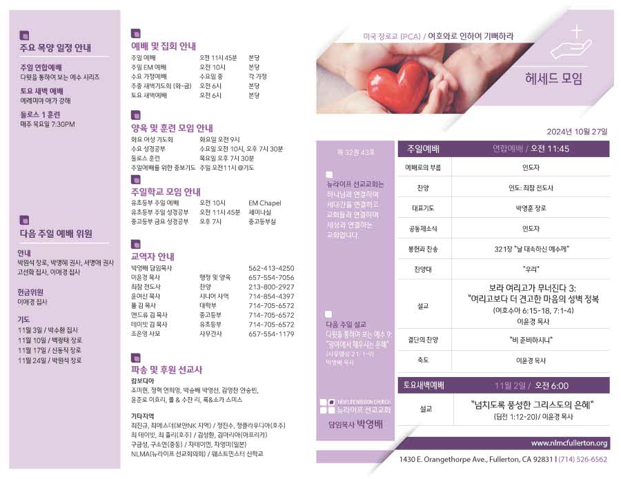 2024년 10월 27일 주보 Publish on October 26,2024 | NLMC 페이지 정보 작성자 NLMC 댓글 0건 조회 1,792회 작성일 24-10-26 09:47 목록 본문 주보 이전글2024년 11월 3일 주보 24.11.09 다음글2024년 10월 20일 주보 24.10.19 댓글 0 댓글목록 등록된 댓글이 없습니다. 목록
