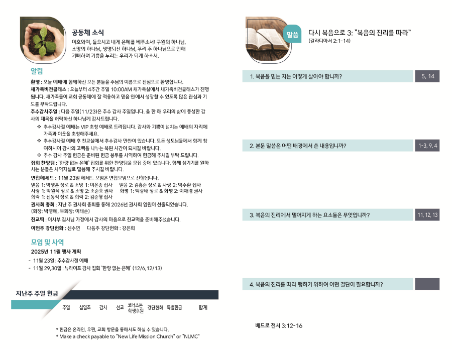 2025년 11월 16일 주보 Publish on November 15,2025 | NLMC 페이지 정보 작성자 NLMC 댓글 0건 조회 352회 작성일 25-11-15 15:06 목록 본문 주보 첨부파일 이전글2025년 11월 23일 주보 25.11.22 다음글2025년 11월 9일 주보 25.11.08 댓글 0 댓글목록 등록된 댓글이 없습니다. 목록