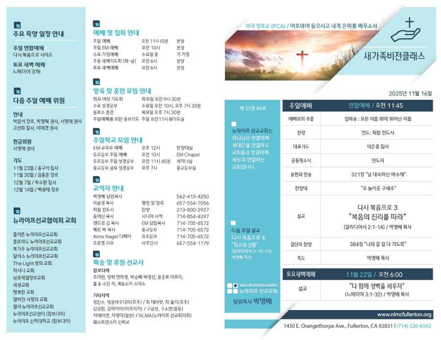 주보 2025년 11월 16일 주보 Publish on November 15,2025 | NLMC 페이지 정보 작성자 NLMC 댓글 0건 조회 352회 작성일 25-11-15 15:06 목록 본문 주보 첨부파일 이전글2025년 11월 23일 주보 25.11.22 다음글2025년 11월 9일 주보 25.11.08 댓글 0 댓글목록 등록된 댓글이 없습니다. 목록
