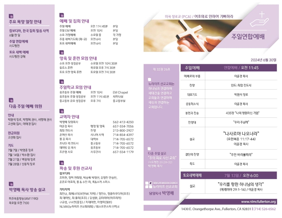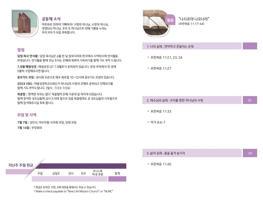 2024년 6월 30일 주보 Publish on June 29,2024 | NLMC 페이지 정보 작성자 NLMC 댓글 0건 조회 1,828회 작성일 24-06-29 13:20 목록 본문 주보 이전글2024년 7월 7일 주보 24.07.06 다음글2024년 6월 23일 주보 24.06.22 댓글 0 댓글목록 등록된 댓글이 없습니다. 목록