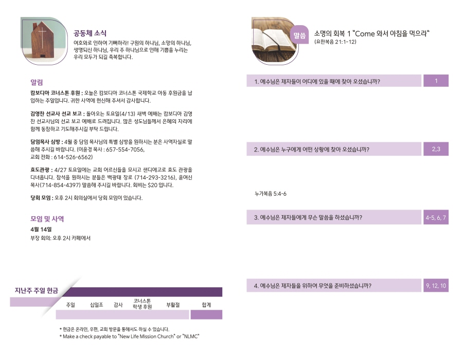 2024년 4월 7일 Publish on April 06,2024 | NLMC 페이지 정보 작성자 NLMC 댓글 0건 조회 1,933회 작성일 24-04-06 09:24 목록 본문 주보 이전글2024년 4월 14일 주보 24.04.13 다음글2024년 3월 31일 주보 24.03.30 댓글 0 댓글목록 등록된 댓글이 없습니다. 목록
