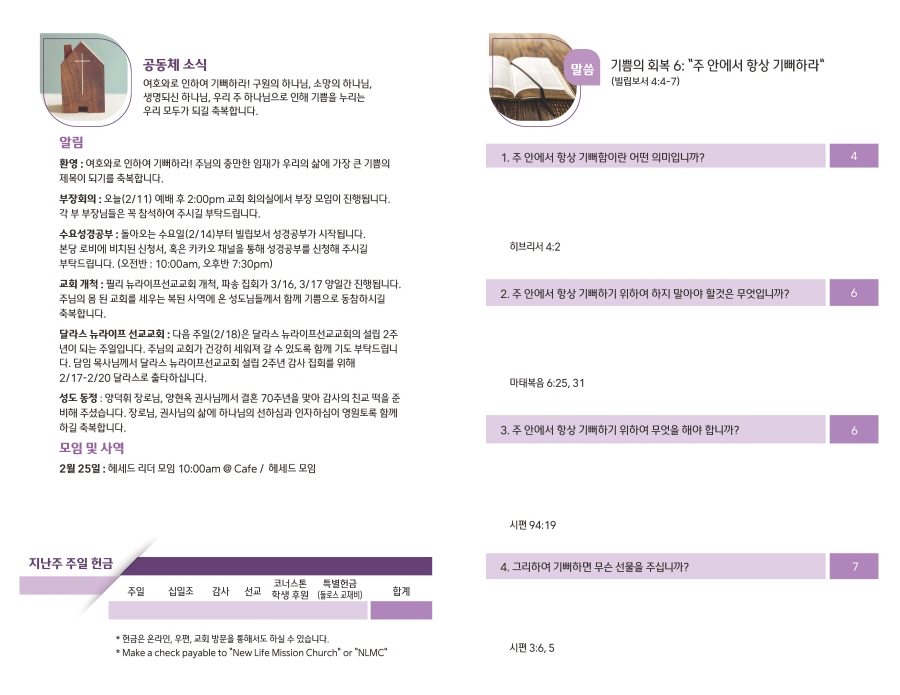 2024년 2월 11일 주보 Publish on February 10,2024 | NLMC 페이지 정보 작성자 NLMC 댓글 0건 조회 1,963회 작성일 24-02-10 10:37 목록 본문 주보 이전글2024년 2월 18일 주보 24.02.17 다음글2024년 2월 4일 주보 24.02.03 댓글 0 댓글목록 등록된 댓글이 없습니다. 목록