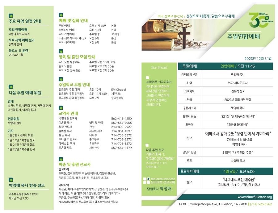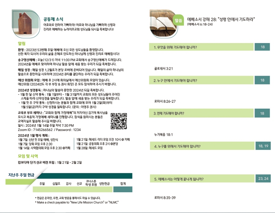 2023년 12월 31일 주보 Publish on December 30,2023 | NLMC 페이지 정보 작성자 NLMC 댓글 0건 조회 2,052회 작성일 23-12-30 12:24 목록 본문 주보 이전글2024년 1월 7일 주보 24.01.06 다음글2023년 12월 24일 주보 23.12.23 댓글 0 댓글목록 등록된 댓글이 없습니다. 목록