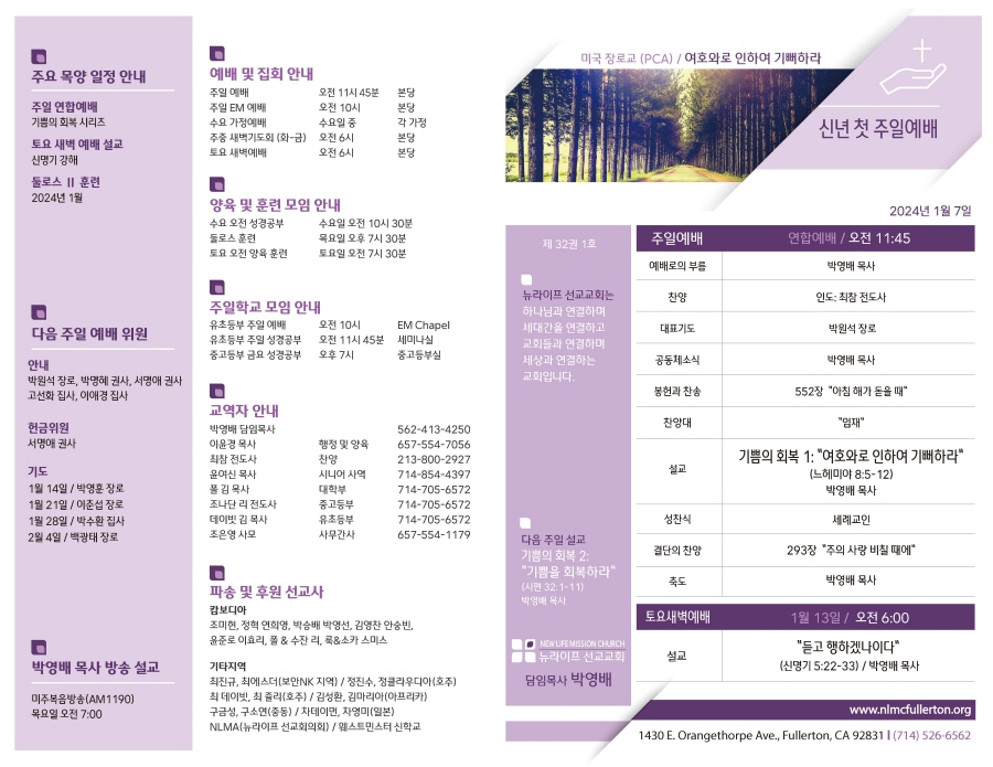 주보 2024년 1월 7일 주보 Publish on January 06,2024 | NLMC 페이지 정보 작성자 NLMC 댓글 0건 조회 2,029회 작성일 24-01-06 10:02 목록 본문 주보 이전글2024년 1월 14일 주보 24.01.13 다음글2023년 12월 31일 주보 23.12.30 댓글 0 댓글목록 등록된 댓글이 없습니다. 목록