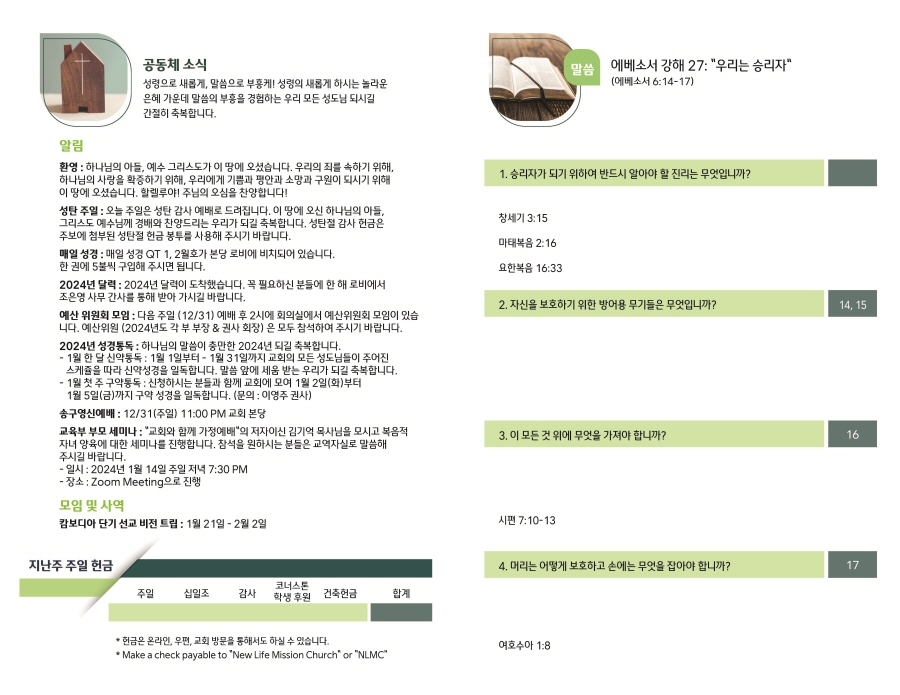 2023년 12월 24일 주보 Publish on December 23,2023 | NLMC 페이지 정보 작성자 NLMC 댓글 0건 조회 2,013회 작성일 23-12-23 09:49 목록 본문 주보 이전글2023년 12월 31일 주보 23.12.30 다음글2023년 12월 17일 주보 23.12.16 댓글 0 댓글목록 등록된 댓글이 없습니다. 목록