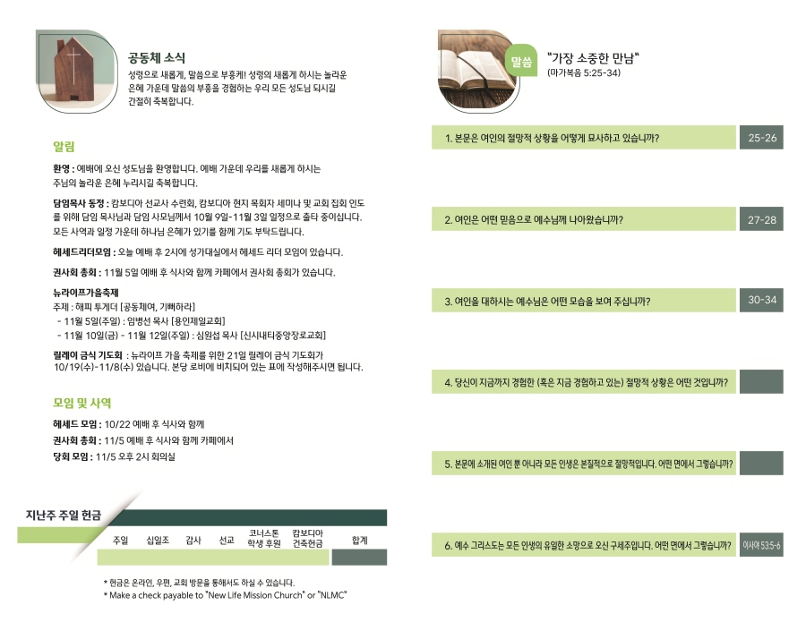 주보 2023년 10월 15일 주보 Publish on October 14,2023 | NLMC 페이지 정보 작성자 NLMC 댓글 0건 조회 2,200회 작성일 23-10-14 09:15 목록 본문 주보 이전글2023년 10월 22일 주보 23.10.21 다음글2023년 10월 8일 주보 23.10.07 댓글 0 댓글목록 등록된 댓글이 없습니다. 목록