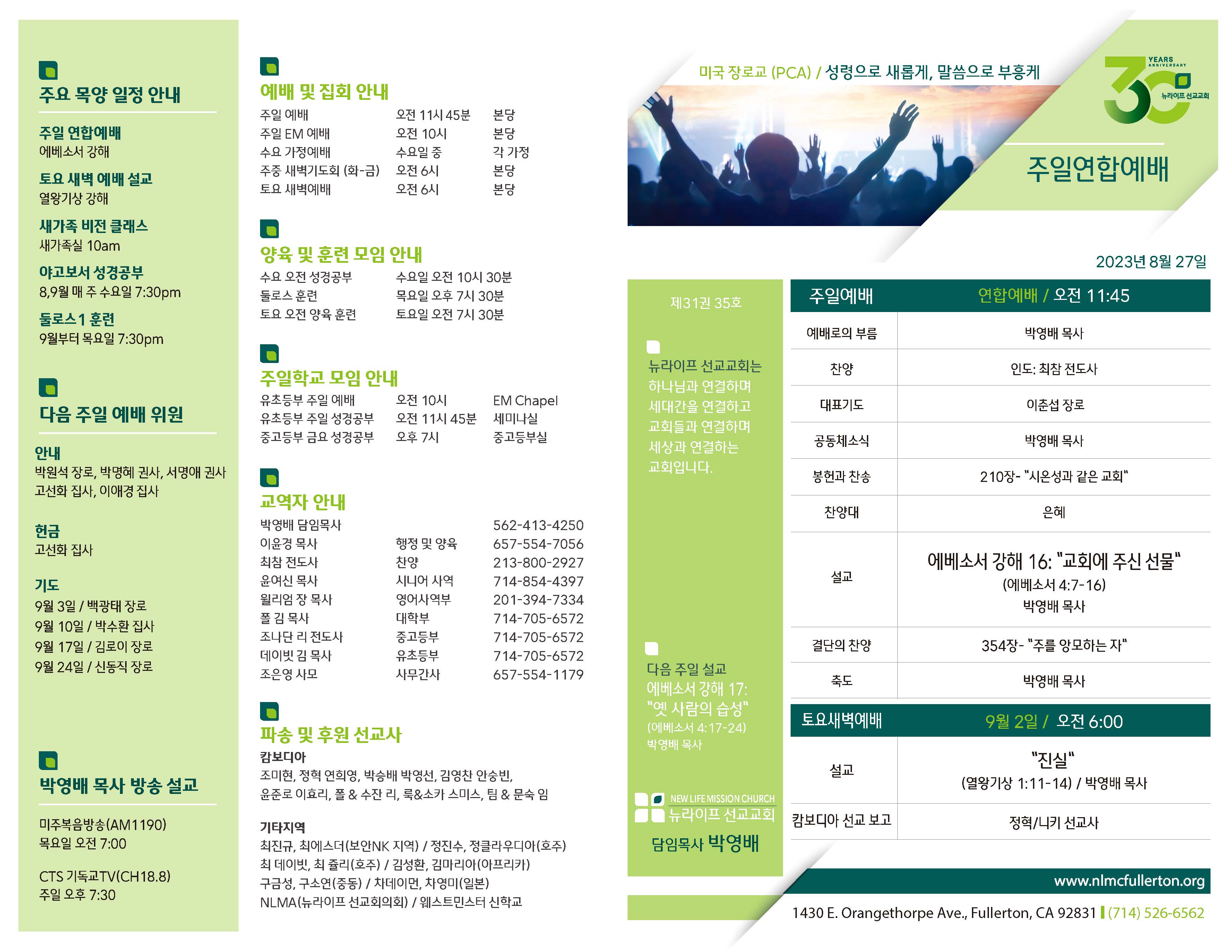 2023년 8월 27일 주보 Publish on August 26,2023 | NLMC 페이지 정보 작성자 NLMC 댓글 0건 조회 2,277회 작성일 23-08-26 08:22 목록 본문 주보 이전글2023년 9월 3일 주보 23.09.02 다음글2023년 8월 20일 주보 23.08.26 댓글 0 댓글목록 등록된 댓글이 없습니다. 목록