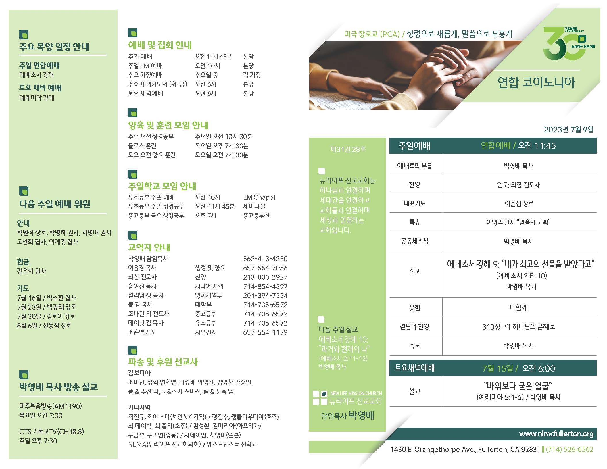 2023년 7월 9일 주보 Publish on August 26,2023 | NLMC 페이지 정보 작성자 NLMC 댓글 0건 조회 2,180회 작성일 23-08-26 08:16 목록 본문 주보 이전글2023년 7월 16일 주보 23.08.26 다음글2023년 7월 2일 주보 23.08.26 댓글 0 댓글목록 등록된 댓글이 없습니다. 목록