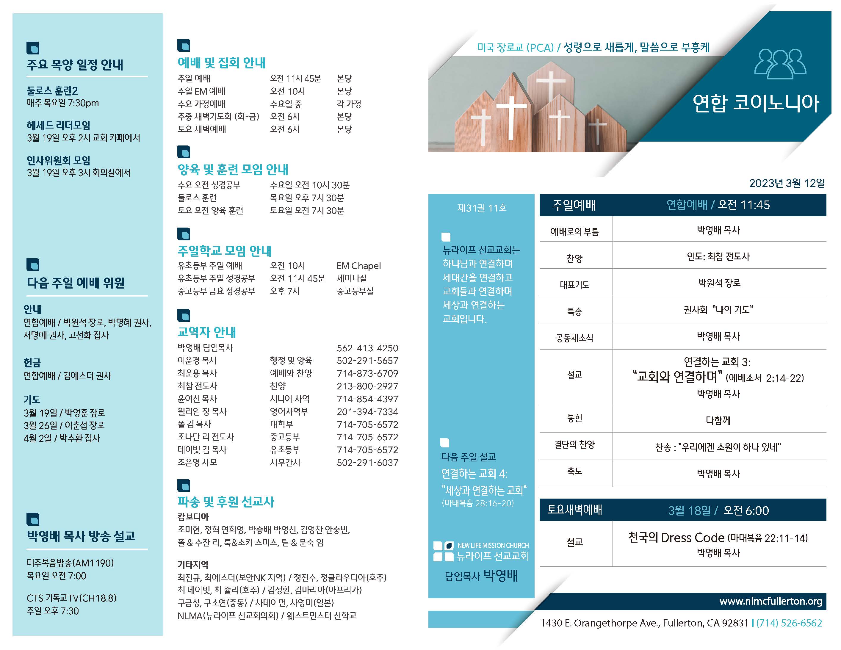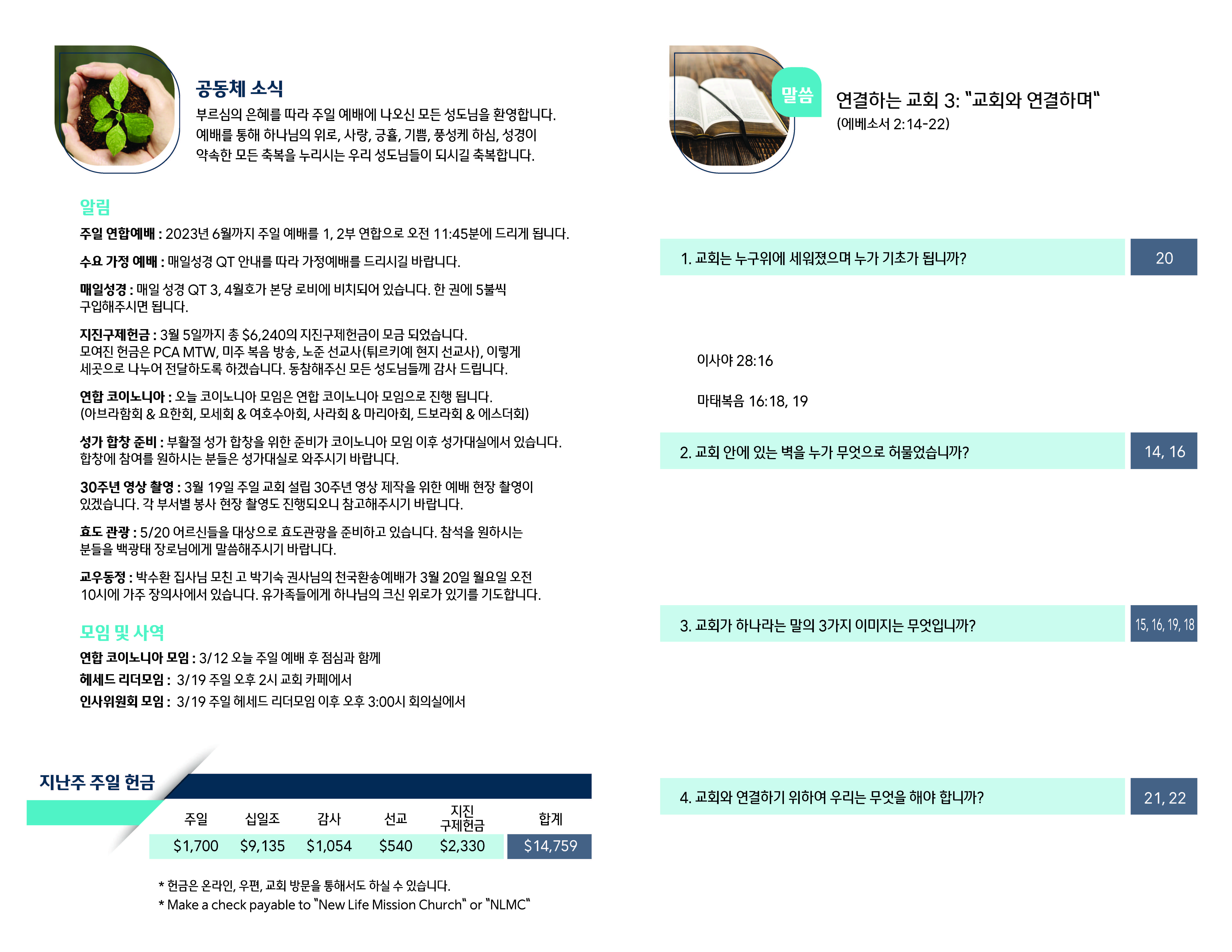 2023년 3월 12일 주보 Publish on August 26,2023 | NLMC 페이지 정보 작성자 NLMC 댓글 0건 조회 2,075회 작성일 23-08-26 08:05 목록 본문 주보 이전글2023년 3월 19일 주보 23.08.26 다음글2023년 3월 5일 주보 23.08.26 댓글 0 댓글목록 등록된 댓글이 없습니다. 목록