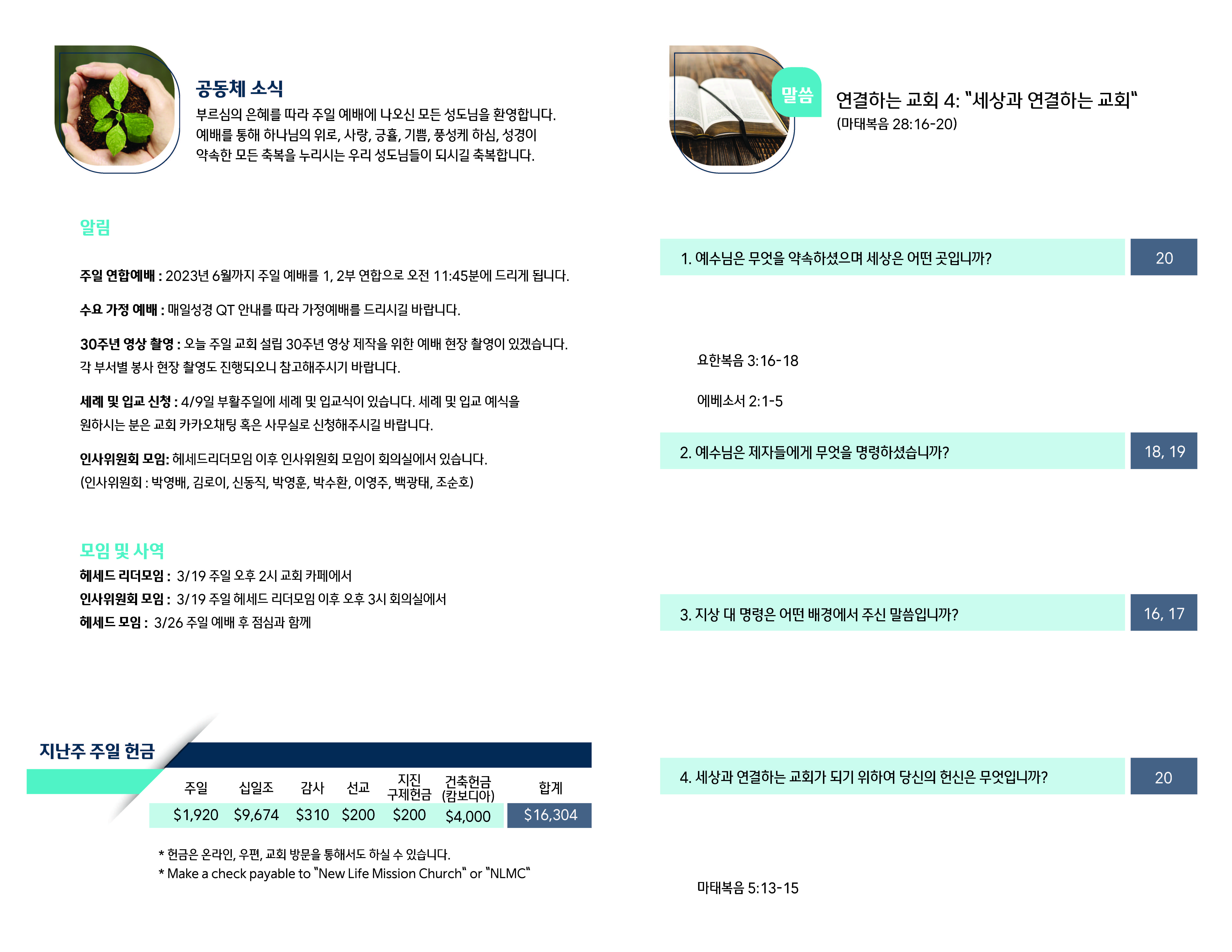 2023년 3월 19일 주보 Publish on August 26,2023 | NLMC 페이지 정보 작성자 NLMC 댓글 0건 조회 2,062회 작성일 23-08-26 08:06 목록 본문 주보 이전글2023년 3월 26일 주보 23.08.26 다음글2023년 3월 12일 주보 23.08.26 댓글 0 댓글목록 등록된 댓글이 없습니다. 목록