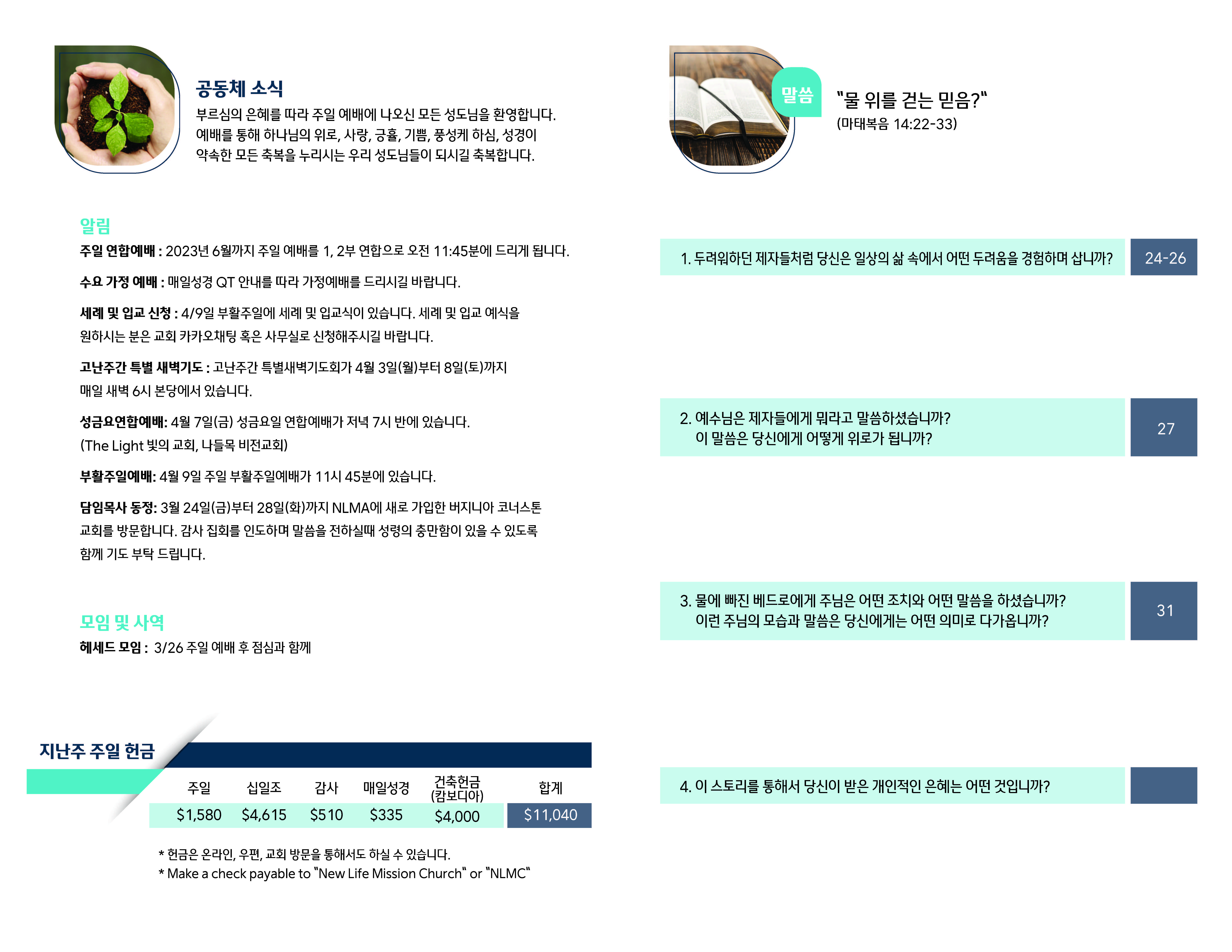 2023년 3월 26일 주보 Publish on August 26,2023 | NLMC 페이지 정보 작성자 NLMC 댓글 0건 조회 2,040회 작성일 23-08-26 08:07 목록 본문 주보 이전글2023년 4월 2일 주보 23.08.26 다음글2023년 3월 19일 주보 23.08.26 댓글 0 댓글목록 등록된 댓글이 없습니다. 목록