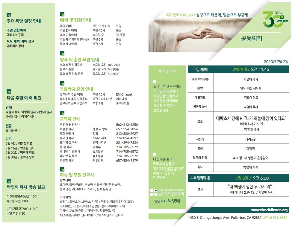 주보 2023-07-02 Publish on August 03,2023 | 뉴라이프선교교회 페이지 정보 작성자 뉴라이프선교교회 댓글 0건 조회 1,986회 작성일 23-08-03 06:48 목록 본문 주보 이전글2023년 1월 1일 주보 23.08.25 댓글 0 댓글목록 등록된 댓글이 없습니다. 목록