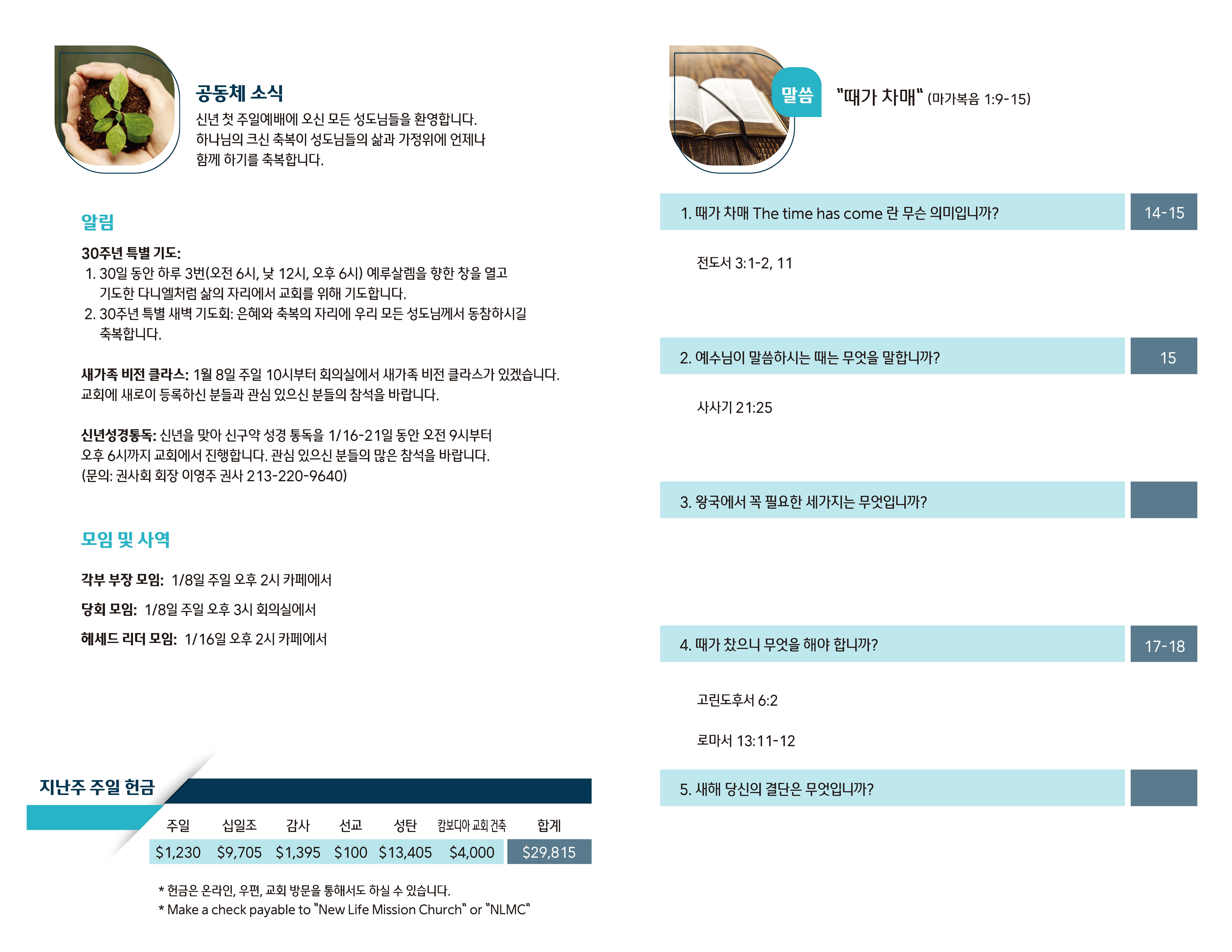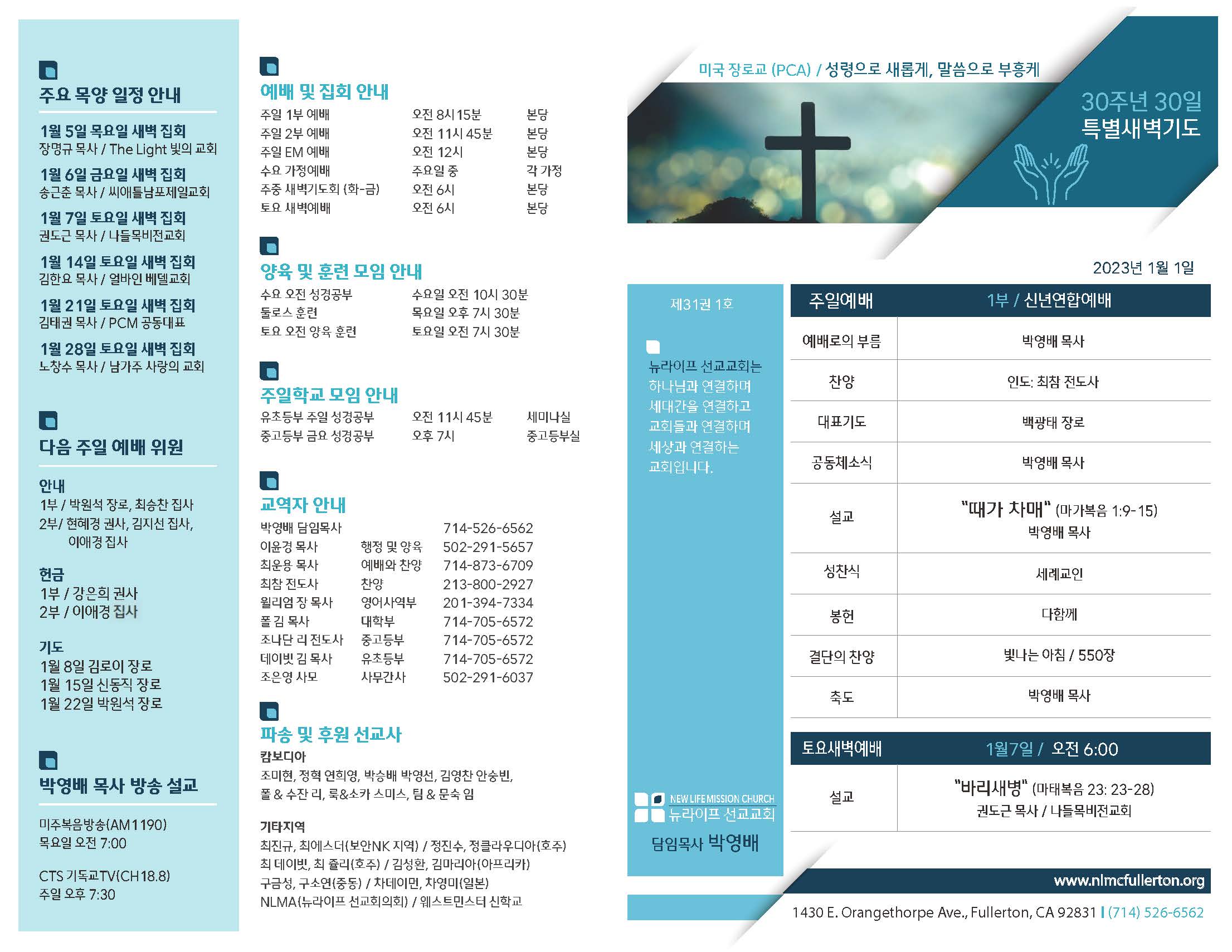 2023년 1월 1일 주보 Publish on August 25,2023 | NLMC 페이지 정보 작성자 NLMC 댓글 0건 조회 1,931회 작성일 23-08-25 20:42 목록 본문 교회 주보 이전글2023년 1월 8일 주보 23.08.25 다음글2023-07-02 23.08.03 댓글 0 댓글목록 등록된 댓글이 없습니다. 목록