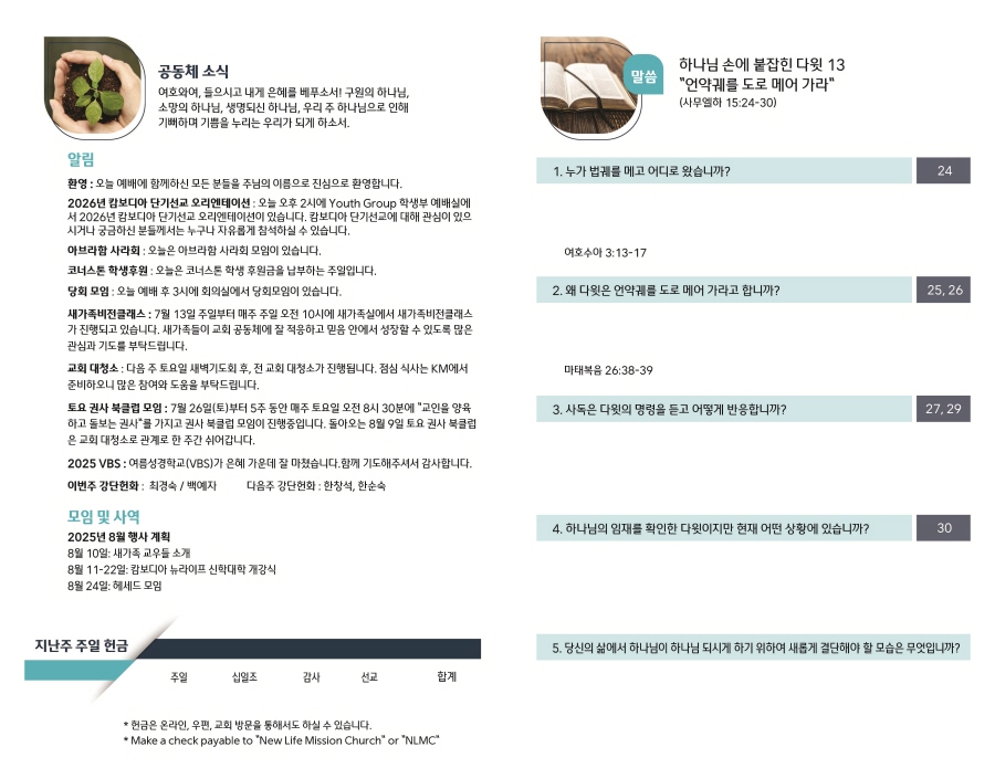 2025년 8월 3일 주보 Publish on August 02,2025 | NLMC 페이지 정보 작성자 NLMC 댓글 0건 조회 874회 작성일 25-08-02 13:57 목록 본문 주보 이전글2025년 8월 10일 주보 25.08.09 다음글2025년 7월 27일 주보 25.07.26 댓글 0 댓글목록 등록된 댓글이 없습니다. 목록