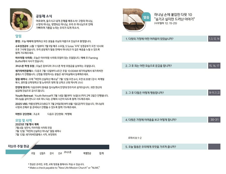 2025년 7월 6일 주보 Publish on July 05,2025 | NLMC 페이지 정보 작성자 NLMC 댓글 0건 조회 978회 작성일 25-07-05 13:08 목록 본문 주보 이전글2025년 7월 13일 주보 25.07.12 다음글2025년 6월 29일 주보 25.06.28 댓글 0 댓글목록 등록된 댓글이 없습니다. 목록