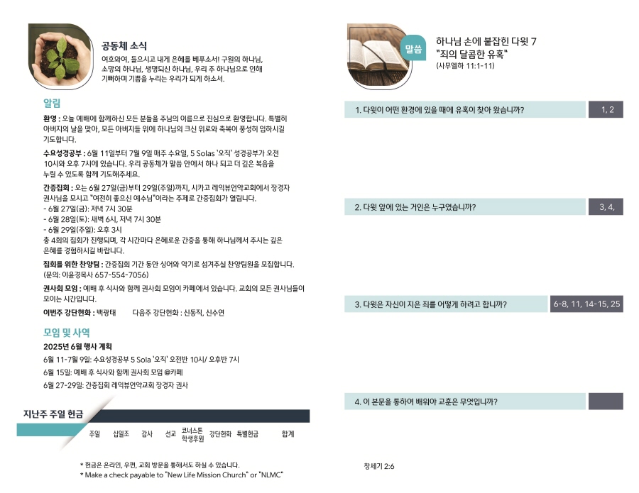 2025년 6월 15일 주보 Publish on June 14,2025 | NLMC 페이지 정보 작성자 NLMC 댓글 0건 조회 1,100회 작성일 25-06-14 09:08 목록 본문 주보 이전글2025년 6월 22일 주보 25.06.21 다음글2025년 6월 8일 주보 25.06.07 댓글 0 댓글목록 등록된 댓글이 없습니다. 목록