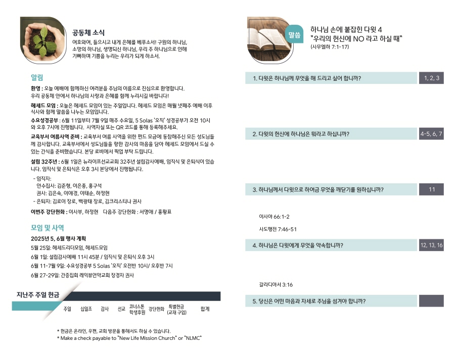 2025년 5월 25일 주보 Publish on May 24,2025 | NLMC 페이지 정보 작성자 NLMC 댓글 0건 조회 1,145회 작성일 25-05-24 14:43 목록 본문 주보 이전글2025년 6월 1일 주보 25.05.31 다음글2025년 5월 18일 주보 25.05.17 댓글 0 댓글목록 등록된 댓글이 없습니다. 목록
