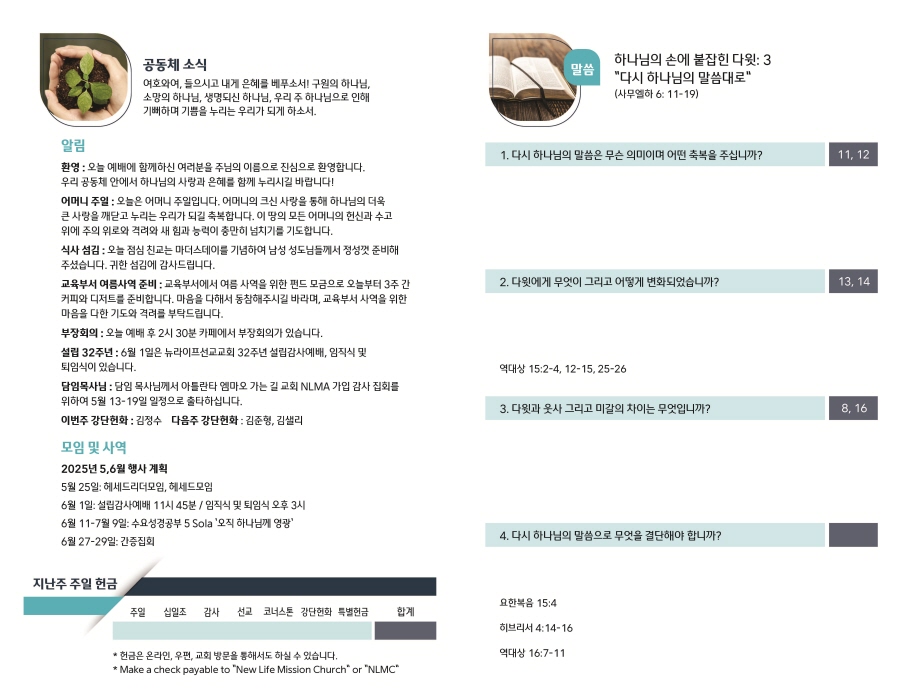 2025년 5월 11일 주보 Publish on May 10,2025 | NLMC 페이지 정보 작성자 NLMC 댓글 0건 조회 1,231회 작성일 25-05-10 10:28 목록 본문 주보 이전글2025년 5월 18일 주보 25.05.17 다음글2025년 5월 4일 주보 25.05.03 댓글 0 댓글목록 등록된 댓글이 없습니다. 목록