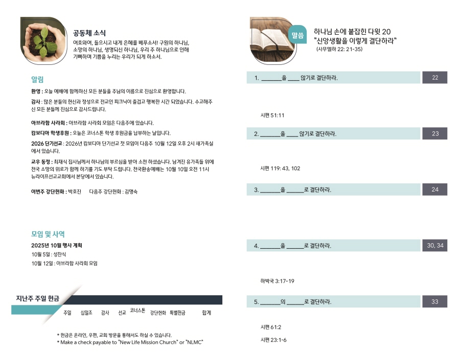 2025년 10월 5일 주보 Publish on October 04,2025 | NLMC 페이지 정보 작성자 NLMC 댓글 0건 조회 338회 작성일 25-10-04 11:37 목록 본문 주보 이전글2025년 10월 12일 주보 25.10.12 다음글2025년 9월 28일 주보 25.09.27 댓글 0 댓글목록 등록된 댓글이 없습니다. 목록