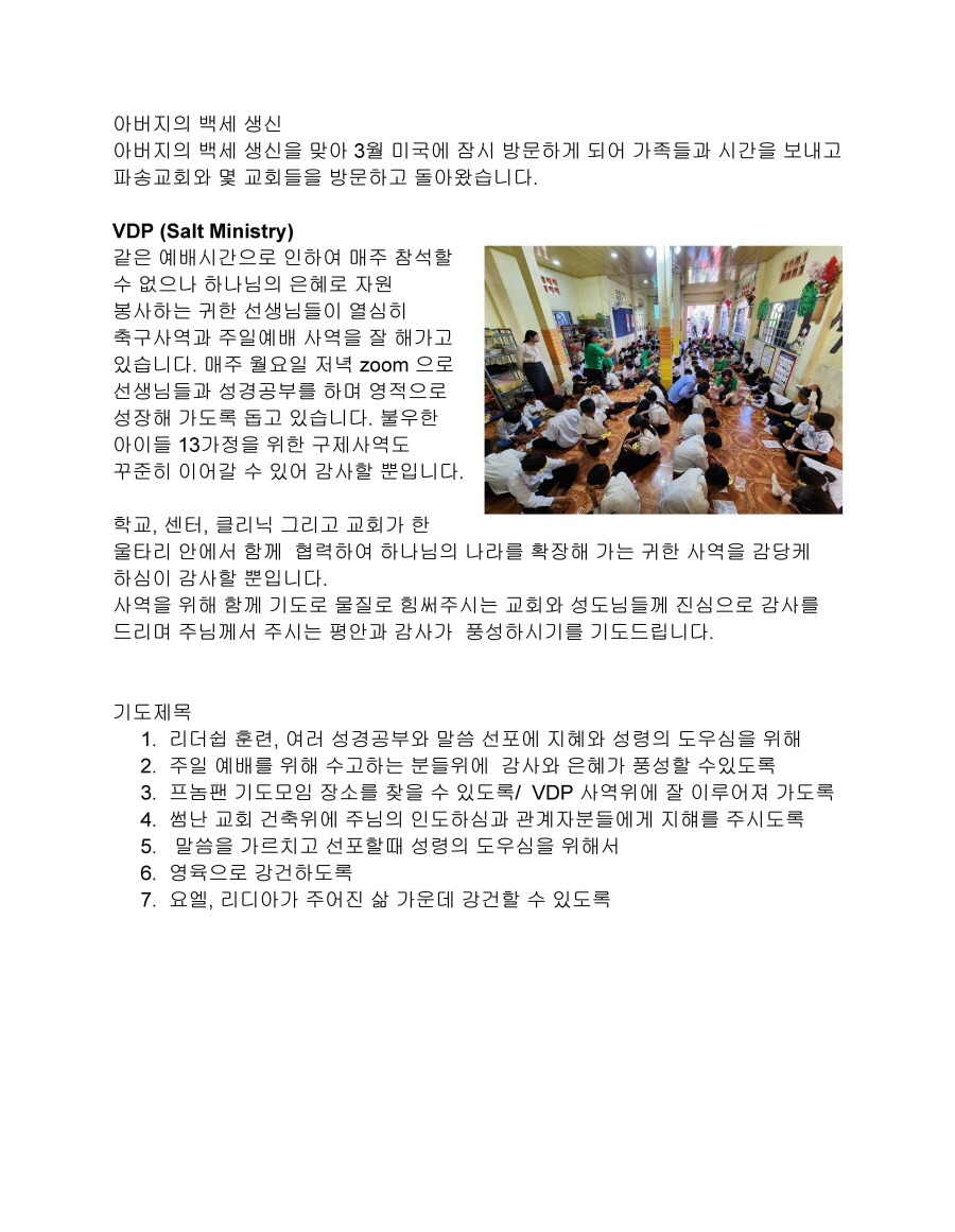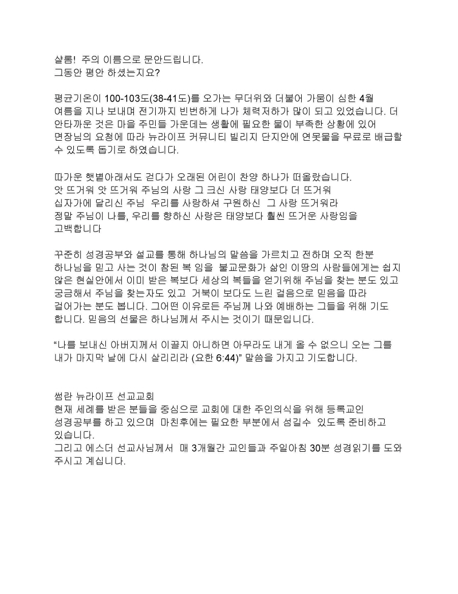 [선교지 편지] 2024년 5월 박승배, 박한나 선교사 선교 편지 페이지 정보 Writer : NLMC Date : 2024-05-11 View : 768 목록 본문 2024년 5월 박승배, 박한나 선교사 선교 편지 이전글2024년 12월 캄보디아 박승배, 박한나 선교사 편지 24.12.28 다음글박승배, 박한나 선교사 선교 편지 23.12.22 LIST