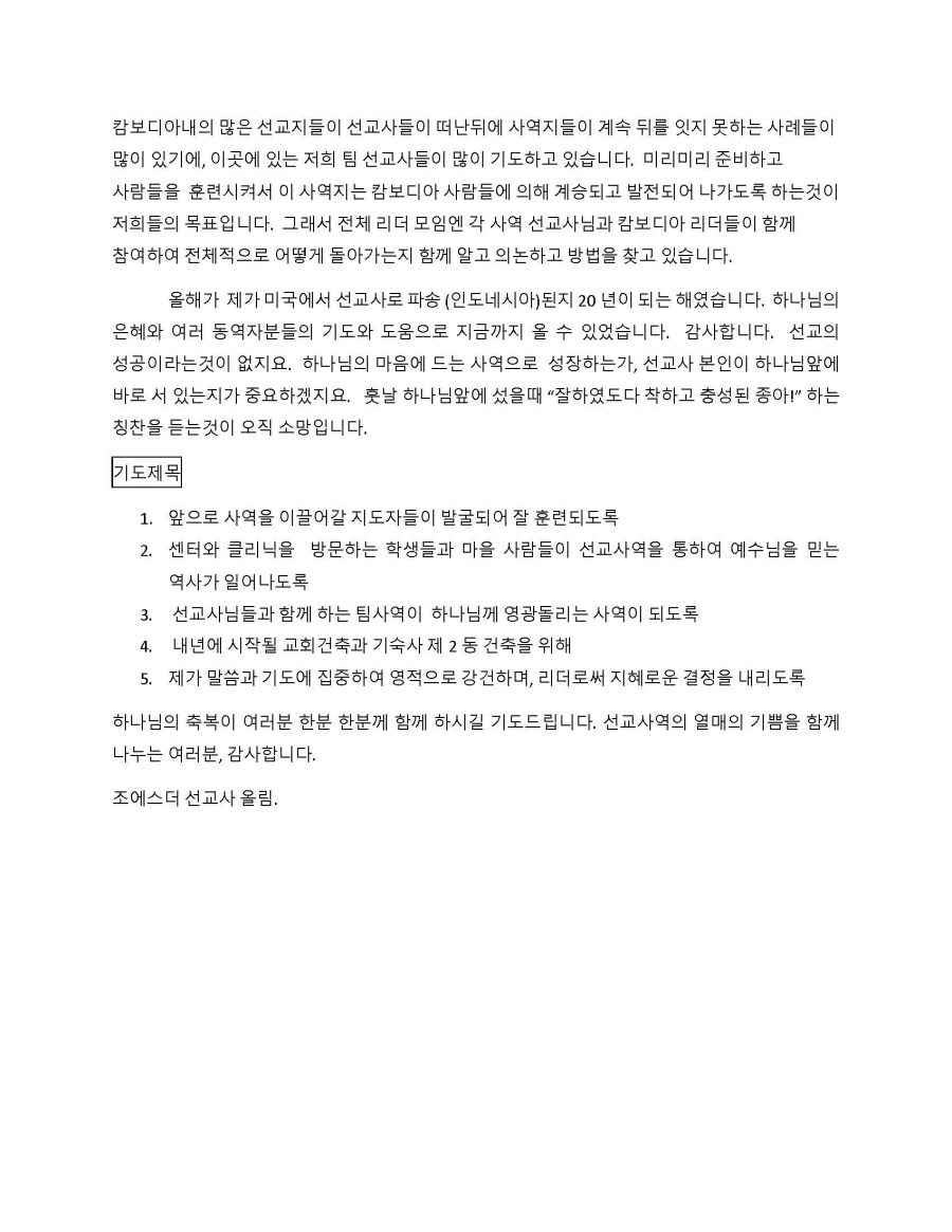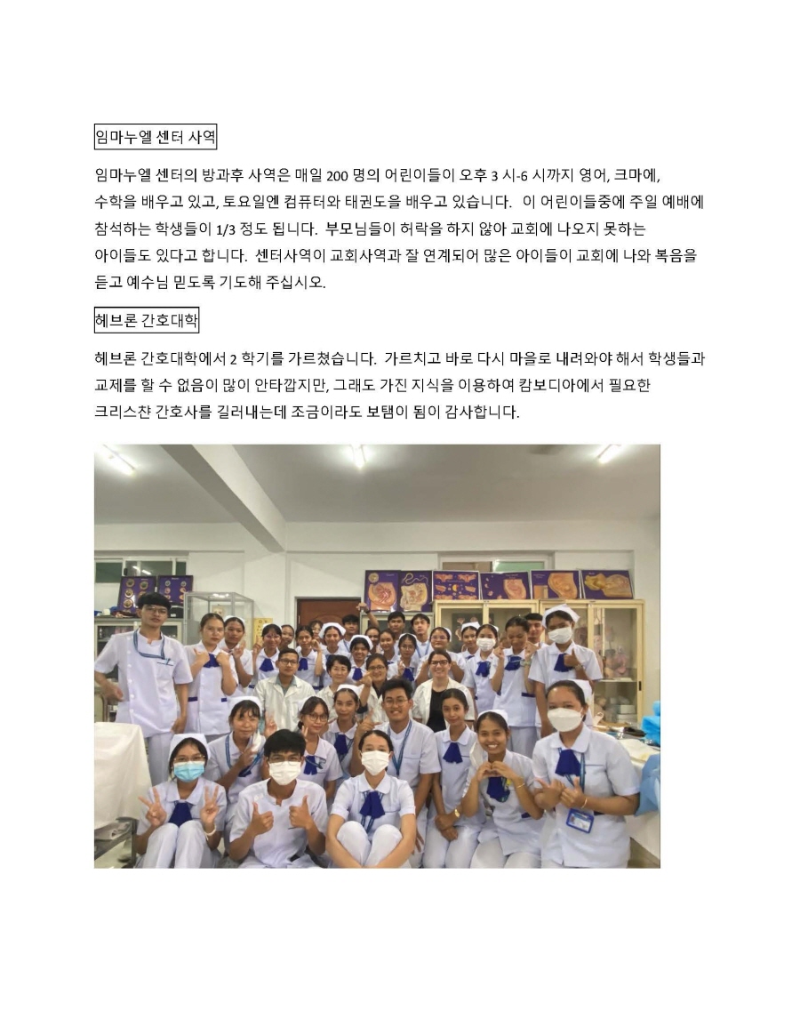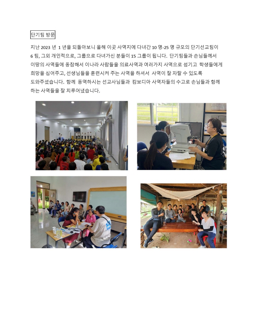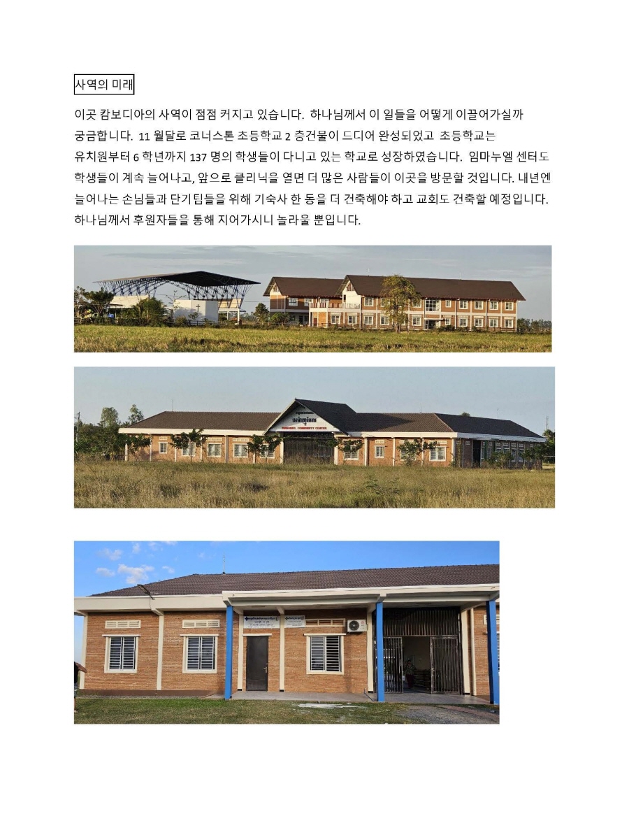 [선교지 편지] 조에스더 선교사 선교 편지 페이지 정보 Writer : NLMC Date : 2023-12-20 View : 821 목록 본문 캄보디아 선교 편지 이전글박승배, 박한나 선교사 선교 편지 23.12.22 다음글박승배, 박한나 선교사 영상 편지 23.10.07 LIST