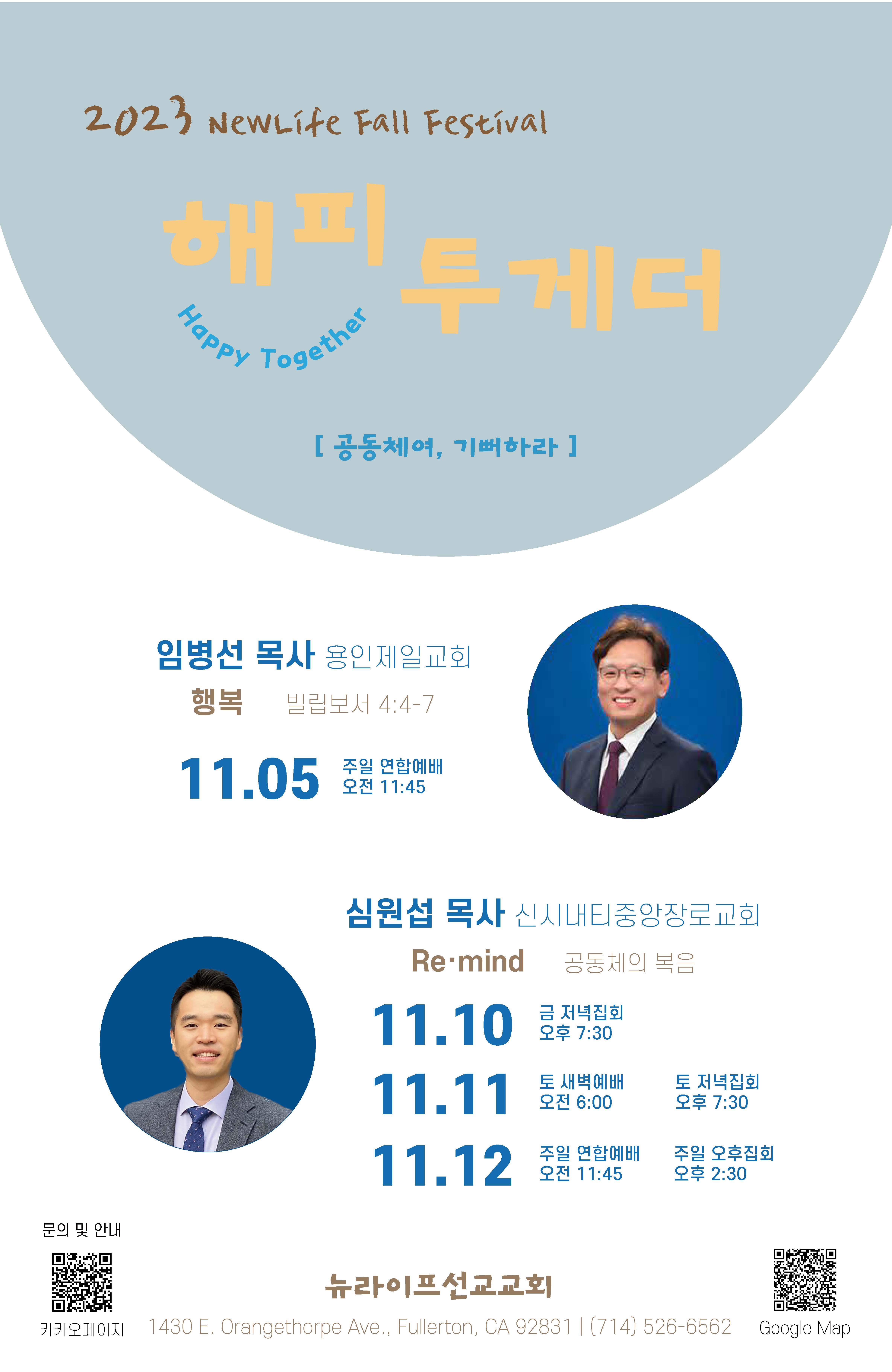 2023년 뉴라이프선교교회 11월 가을 축제 [해피 투게더] Publish on October 24,2023 | NLMC